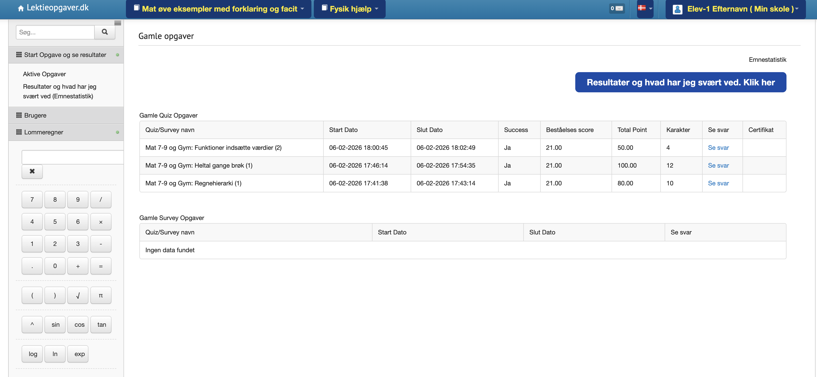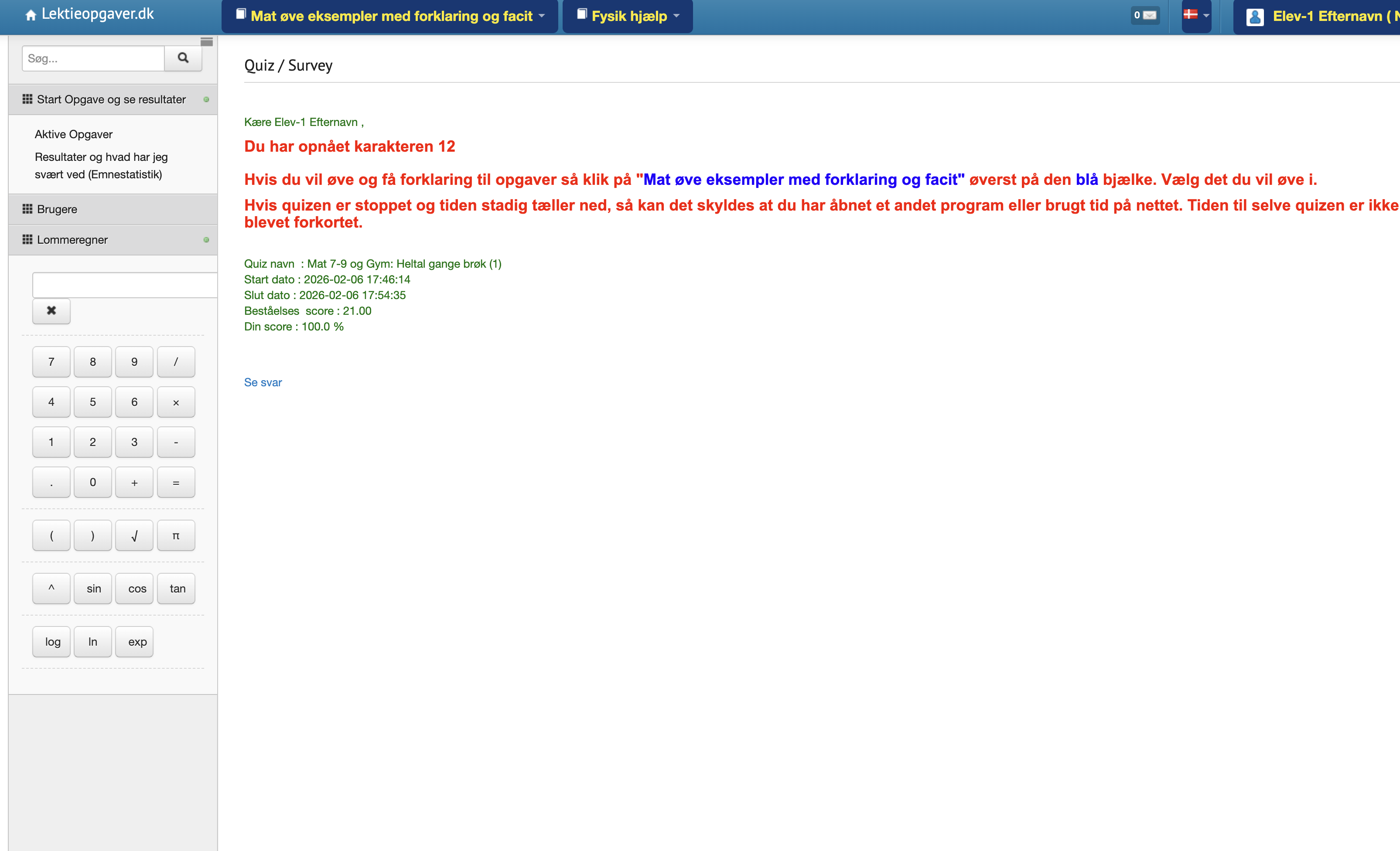 Målrettet 7.–9. klasse og overgang til gymnasiet. Gymnasie vedligehold. Tag en hurtig quiz i matematik eller fysik/kemi, få feedback og se statisik "hvad er jeg god til" og gå videre til næste niveau.